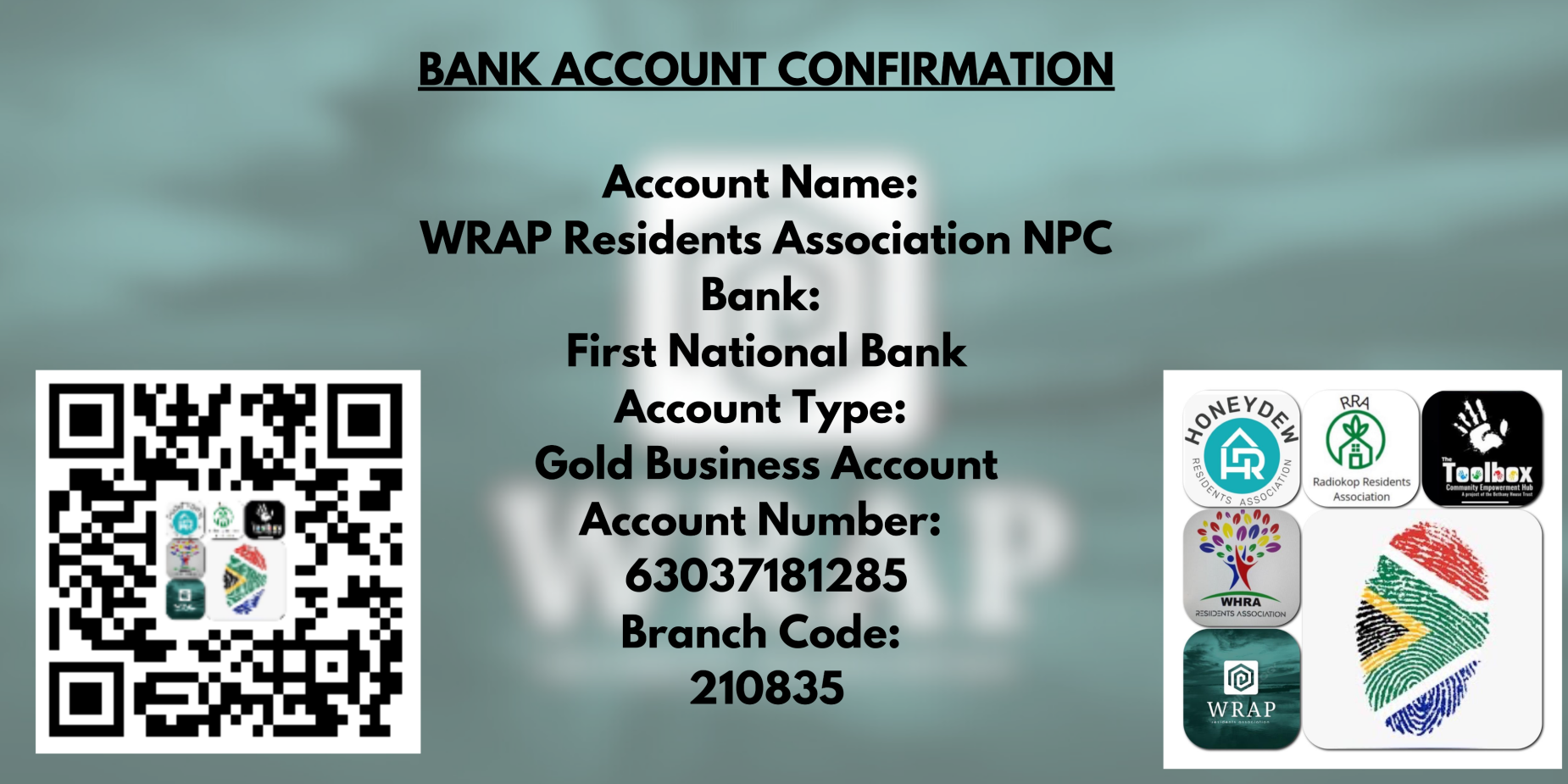 The aim of this RA is to better the community of Ruimsig, Amarosa, Poortview and Willowbrook